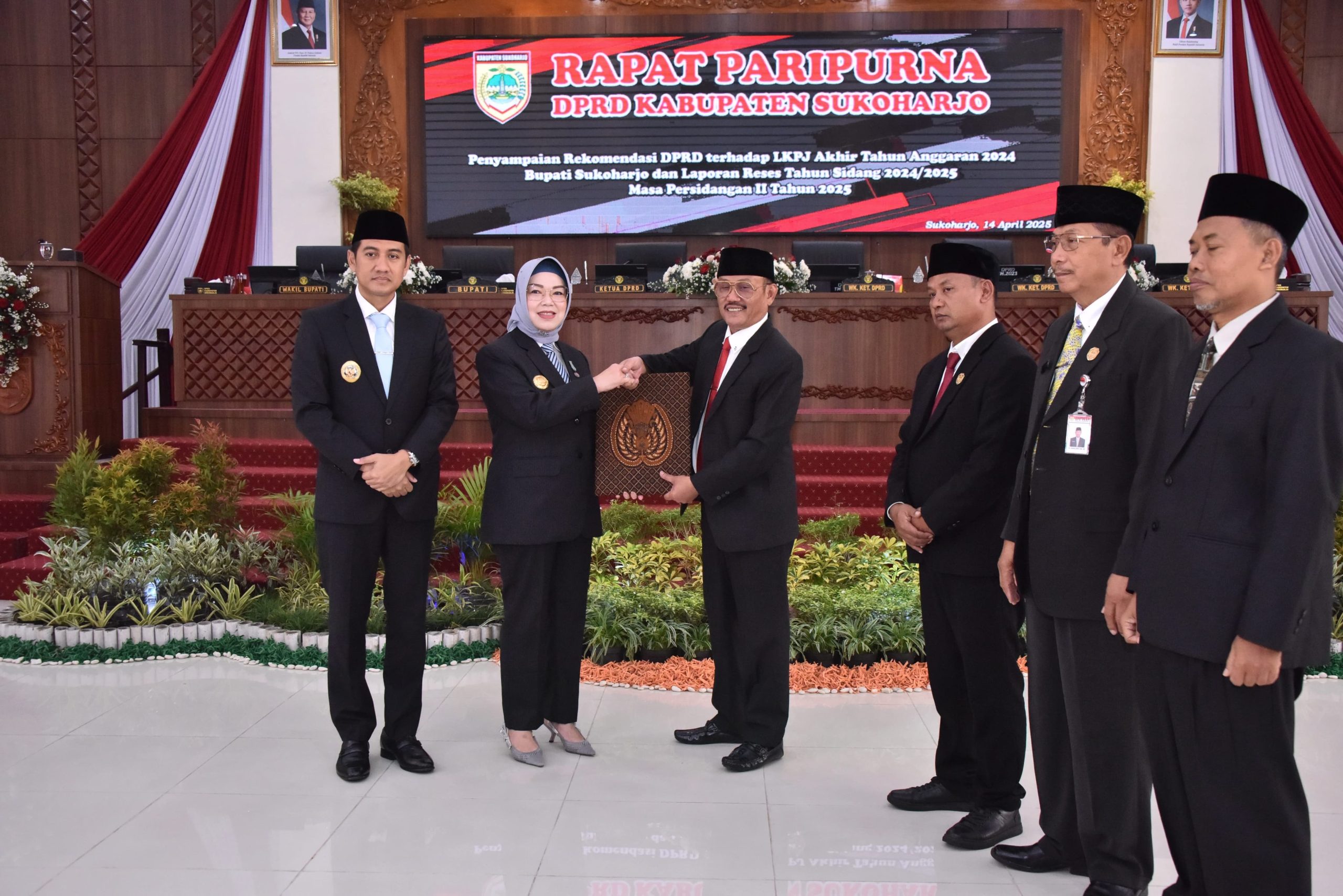 Dalam rapat yang dipimpin Ketua DPRD Sukoharjo Nurjayanto didampingi pimpinan DPRD serta dihadiri Bupati Etik Suryani, Wakil Bupati eko Sapto serta tamu undangan, DPRD menyampaikan apresiasi atas prestasi yang selama ini dicapai Pemkab Sukoharjo. Yakni, 18 penghargaan tingkat nasional pada tahun 2024.